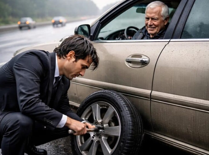 Era una tarde lluviosa y fría. Mientras avanzaba por la autopista desierta, vi un viejo Buick detenido al costado, con una llanta pinchada, y a un hombre anciano esperando, completamente desesperado. Como ingeniero desempleado, sin un centavo en el bolsillo y sin esperanza en el futuro, todo lo que quería era refugiarme en un lugar cálido. Pero al ver sus manos temblorosas y la indiferencia de los autos que pasaban a toda velocidad, mi conciencia no me permitió seguir de largo. Me detuve, me arrodillé sobre el asfalto embarrado y empapado, y con esfuerzo logré cambiar la llanta.