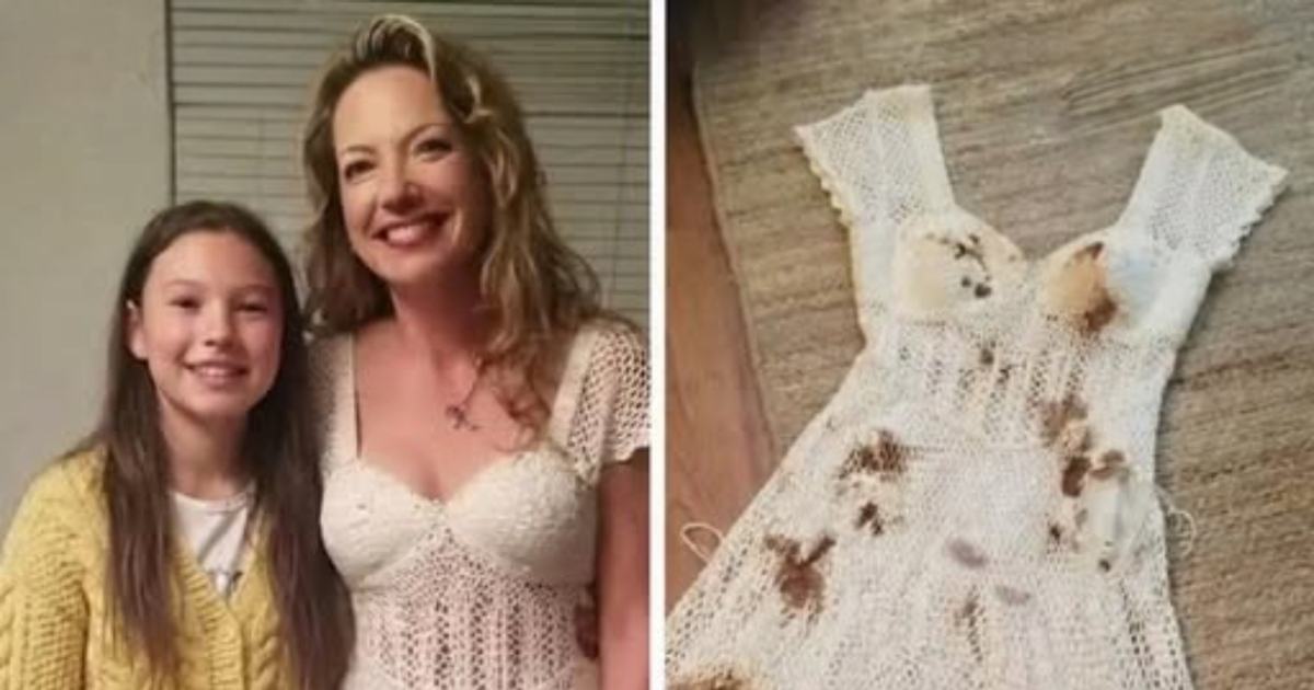 Morgenen på bryllupsdagen min ble rystet da jeg fant datteren min, Lily, hulkegråtende i vaskerommet. I flere måneder hadde hun brukt hver ledige stund på å strikke brudekjolen min – et ekte kjærlighetsarbeid, laget med bjørketrepinner hun hadde arvet fra sin avdøde far. Kjolen var langt mer enn bare et plagg; den bar historien vår og vitnet om styrken hennes. Men da jeg kom nærmere, oppdaget jeg at overdelen var revet opp og at skjørtet var gjennomtrukket av rødvin. Det var ikke et uhell eller en klønete tabbe, men et bevisst forsøk på å ødelegge det mest følelsesladde symbolet på hele dagen.