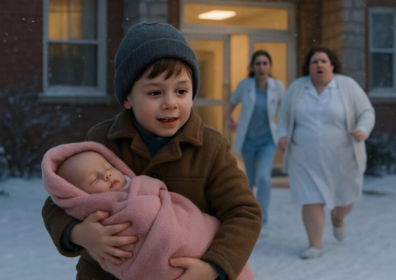 Cuando una enfermera notó la situación y gritó, se desató el pánico en el hospital. El pequeño, ignorando los llamados, apretó a la bebé contra su pecho y salió corriendo a la helada calle invernal. Guardias de seguridad, doctores y el padre, aterrados, comenzaron a perseguir al niño, resbalando sobre la nieve. Todos temían por la salud de la bebé y el riesgo de hipotermia.