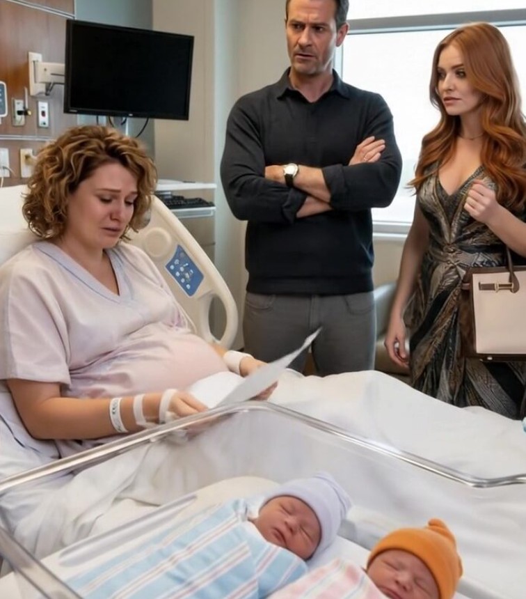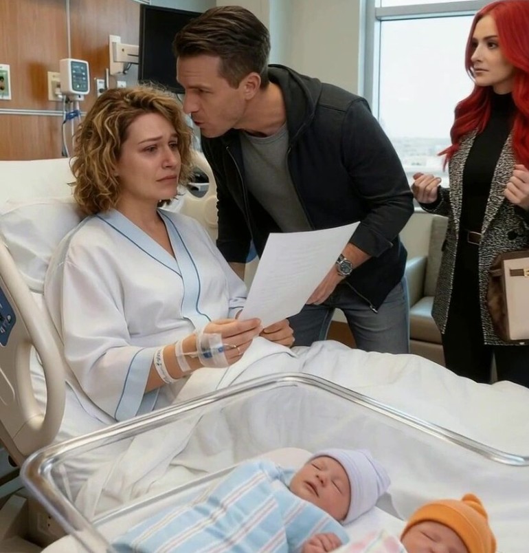 Da døren åpnet seg, var det ikke en sykepleier som kom inn, men mannen min, Connor, ikledd en iskald arroganse. Like bak ham sto assistenten hans, Sabrina, kvinnen jeg hadde mistenkt i månedsvis. I stedet for å se på sin nybakte mor til sine barn, kastet Connor en mappe på sengen min. «Skriv under på skilsmissepapirene,» sa han med en stemme så følelsesløs som is. «Du er ikke lenger den kvinnen jeg giftet meg med. Jeg orker ikke styret med tre unger, og se på deg selv – du er et vrak.»