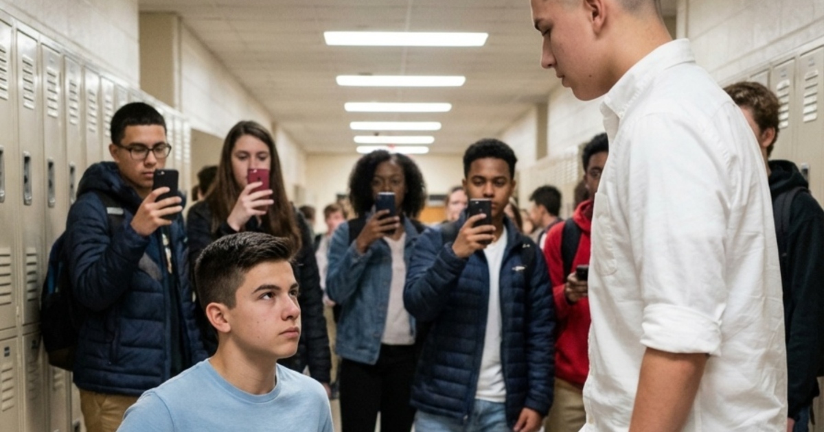 Til slutt var Alex fortsatt våt og skalv, men for første gang på mange år følte han seg ikke alene i skolekorridoren. Emma tok av seg jakken og la den over skuldrene hans, mens de andre elevene skamfullt puttet telefonene tilbake i lommene og gikk sin vei. Den dagen endte ikke bare en mobbehistorie på skolen, men det ble også bevist for alle at mot og rettferdighet kan være langt mektigere enn fysisk styrke.