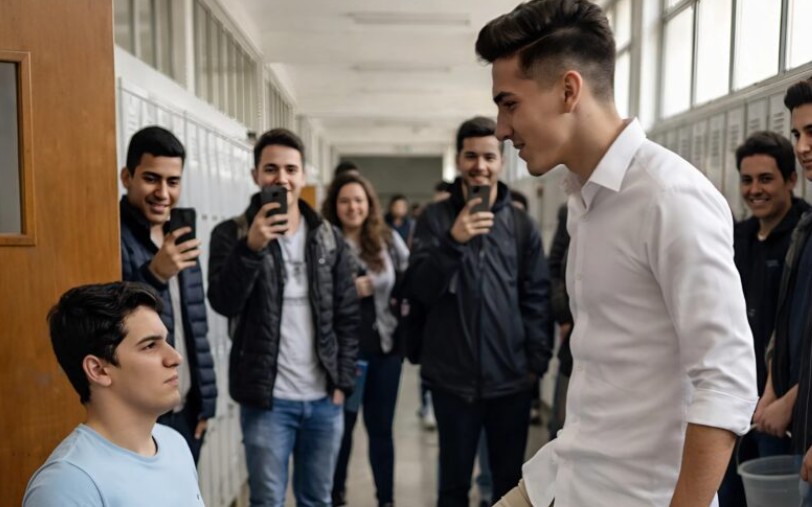 Korridoren som tidligere hadde rungende latter, ble til dødsstille. Telefonene var fortsatt på, men det som nå ble filmet, var ikke lenger en funksjonshemmet ung manns lidelse, men de såkalte “uslåelige” bøllene som lå ydmyket på gulvet. Emma sendte et hardt blikk mot de liggende bøllene og til tilskuerne: “Dere sletter alle disse videoene med en gang. Hvis noen prøver å røre ham igjen, vil dere møte meg.” Ingen våget å protestere mot hennes urokkelige autoritet.