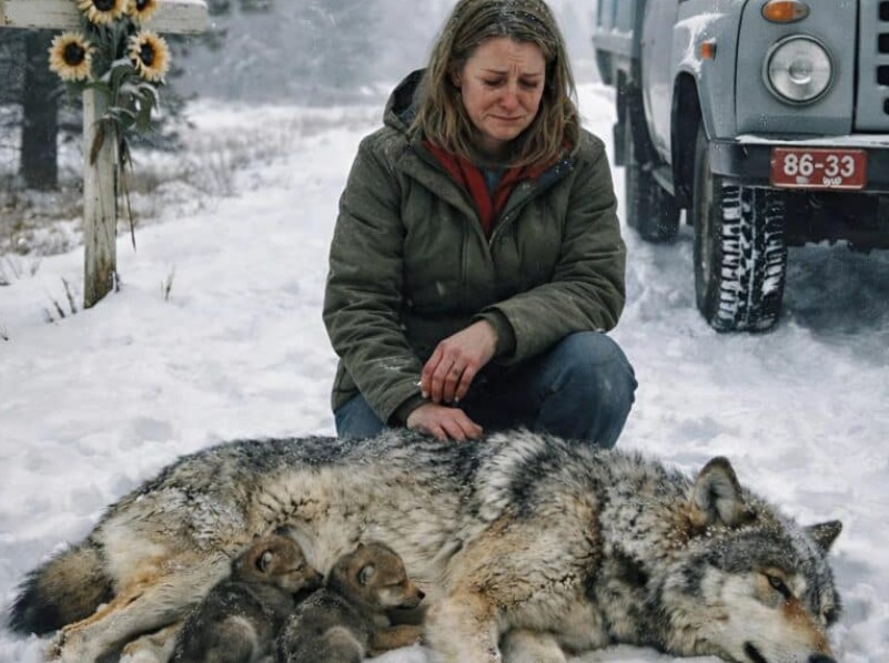 Al bajar del coche y acercarse, se encontró con una loba inmóvil sobre la nieve. Estaba exhausta y a punto de congelarse; a su lado, dos pequeñas crías temblaban de frío y miedo, como suplicando que su madre se levantara. La razón le decía que debía volver al coche de inmediato; incluso herido, un lobo siempre es peligroso. Pero su conciencia pesaba más, y al inclinarse para ayudar, notó un detalle que le cortó la respiración.